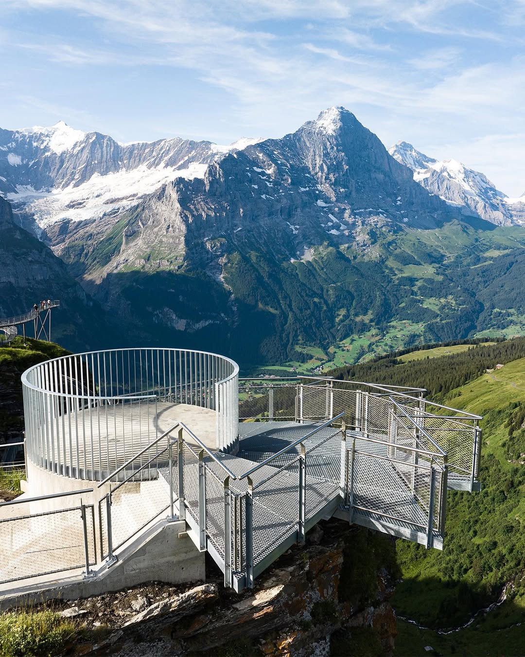 Grindelwald sits at 1,034 meters elevation and is one of the main gateways to the Jungfrau region, drawing hundreds of thousands of visitors each year. The cable car to First takes about 25 minutes, and from there, the famous First Cliff Walk suspends you along a metal path hugging the mountain edge with a drop of several hundred meters below.