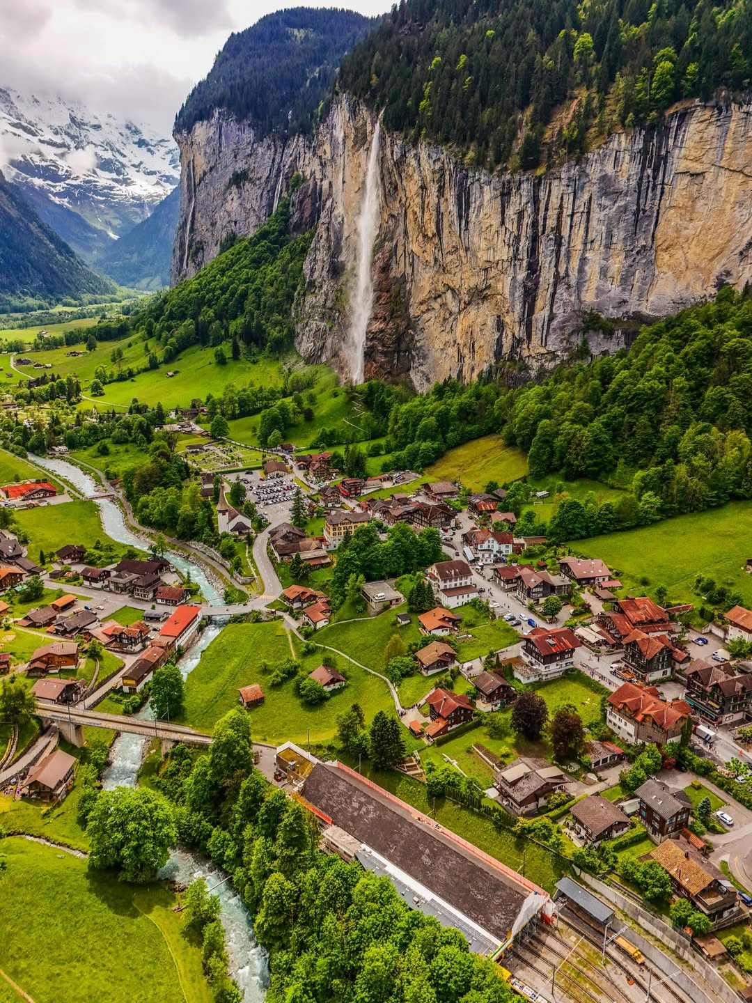You’ll step into Lauterbrunnen and immediately hear water. Not one waterfall, but dozens. This valley holds 72 waterfalls, including the famous Staubbach Falls dropping nearly 300 meters, one of the highest free-falling waterfalls in Europe.