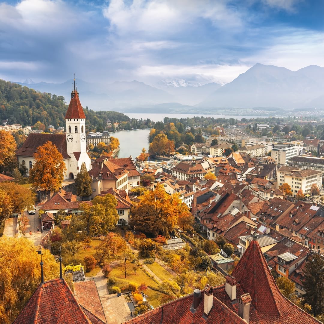 Thun often gets overshadowed by Interlaken, but that’s exactly why it works. You get the same lake and mountain setting with a fraction of the crowds. The town sits on Lake Thun, with clear alpine water flowing directly into the Aare River.