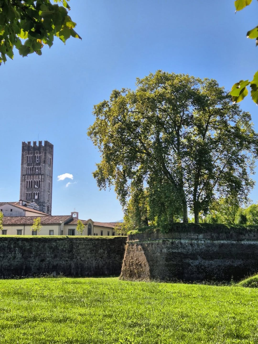 Lucca feels calm, balanced, and surprisingly uncrowded. You’ll notice tree-lined walls surrounding the city, creating a peaceful contrast to busier Tuscan destinations.