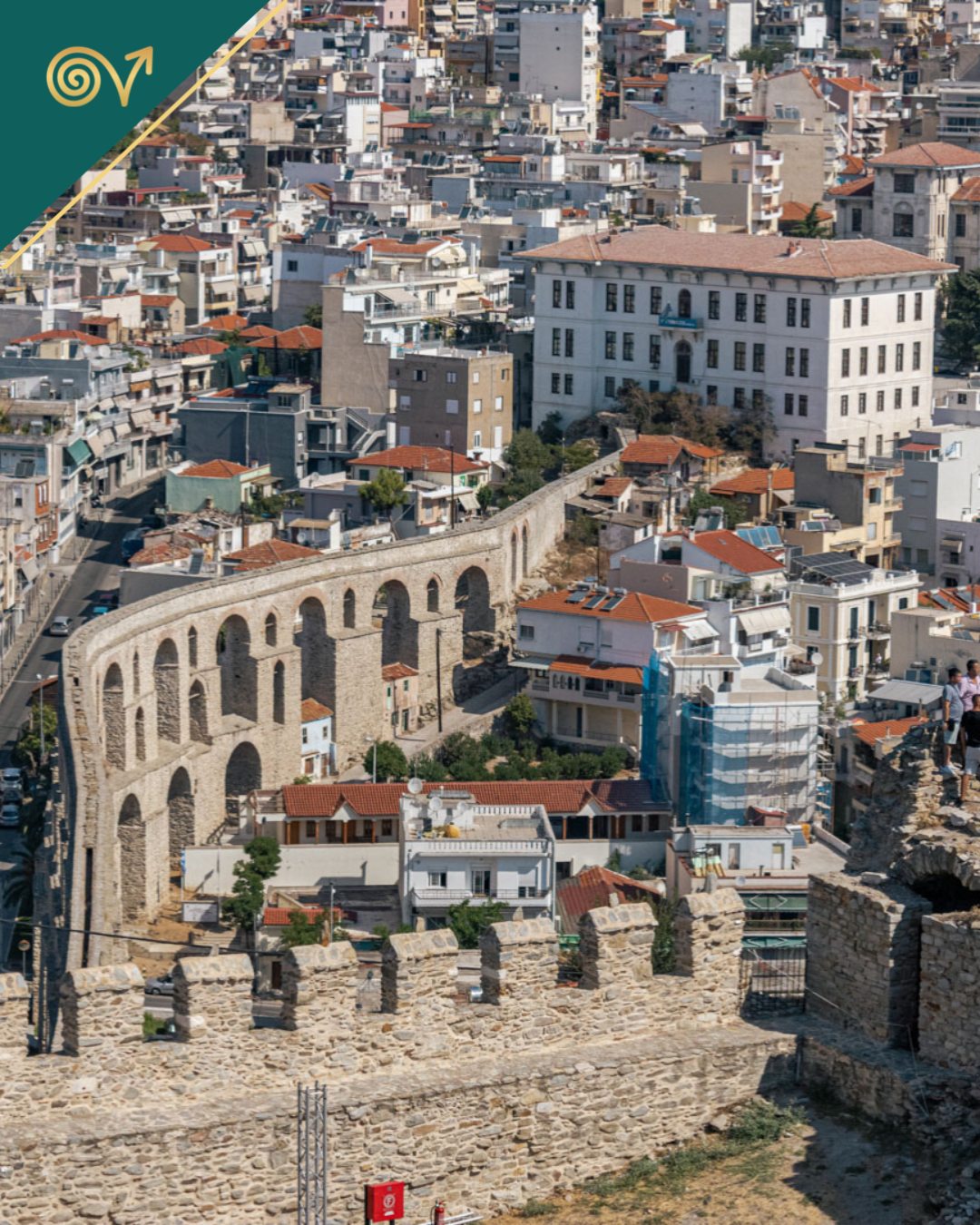 Kavala has a striking first impression. You’ll notice a hillside city cascading toward the sea, with an aqueduct cutting through the urban landscape. It feels dramatic but still affordable.