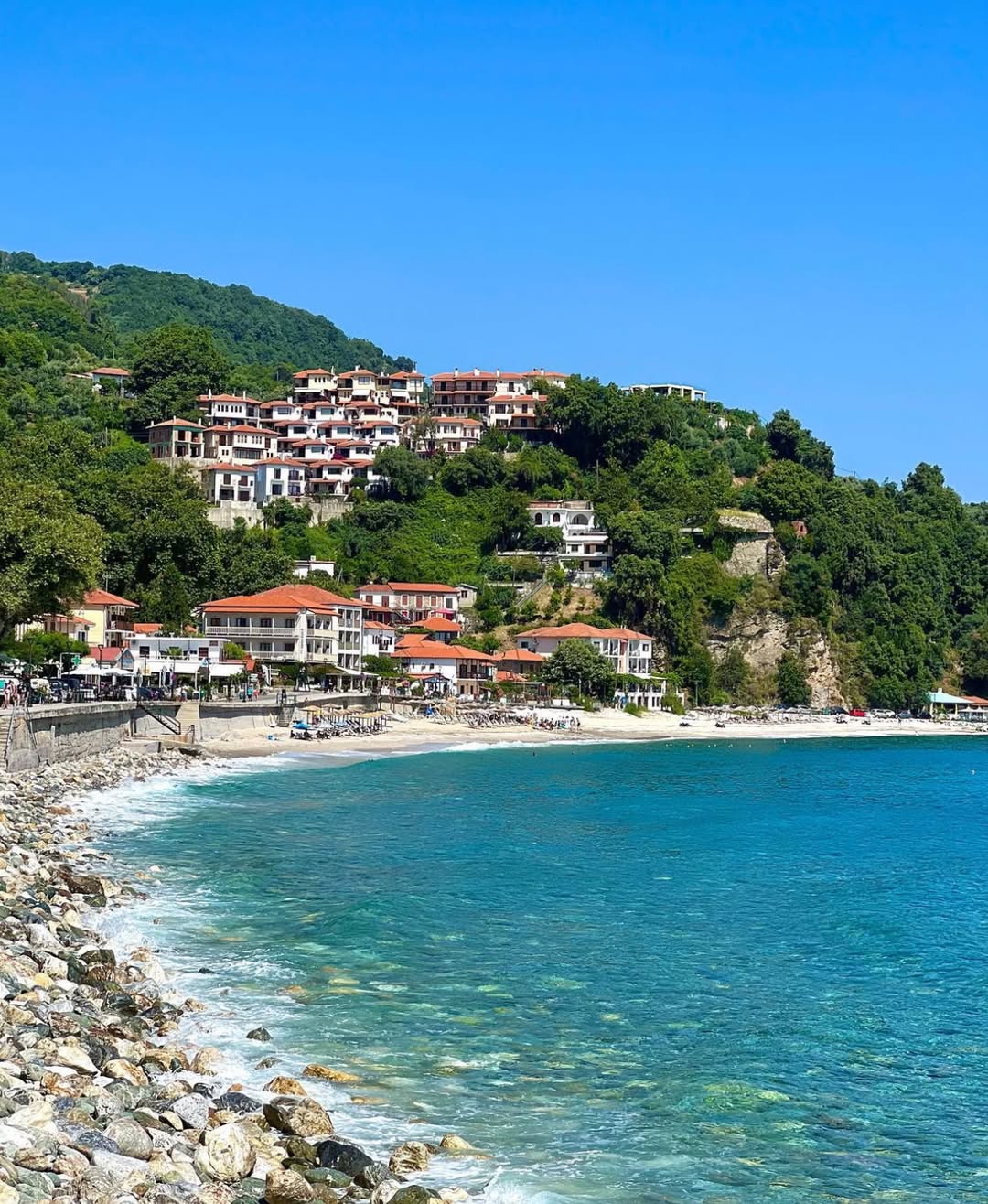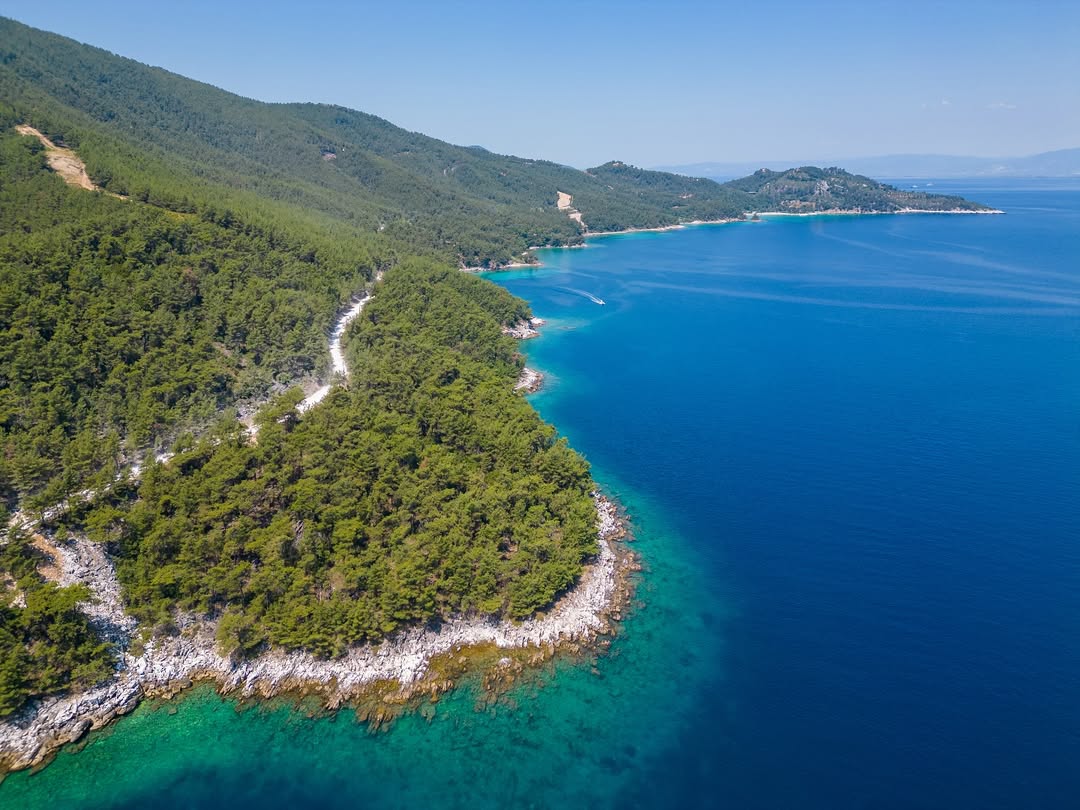 Thassos feels lush and accessible. You’ll notice pine forests meeting clear water, and beaches that are easy to reach without long travel times. It has a very relaxed, almost family-oriented atmosphere.