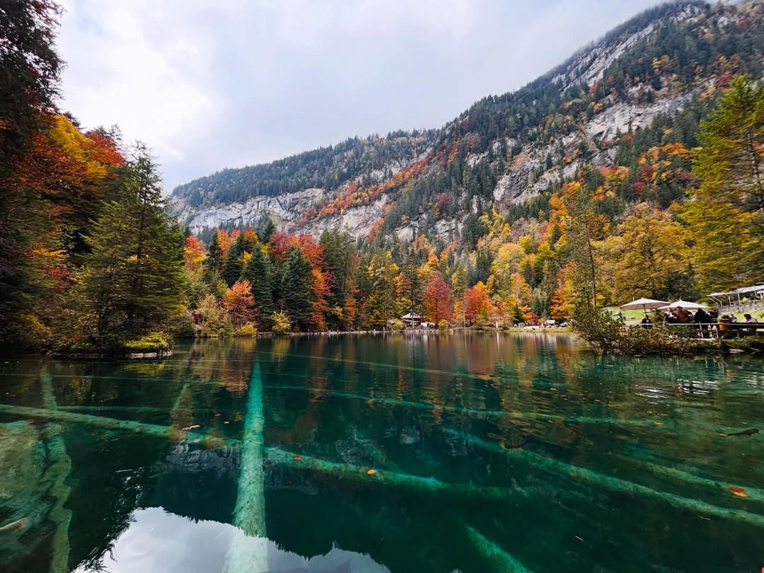Blausee feels almost unreal the moment you see it. The lake is small, only about 0.64 hectares, but the water is so clear and intensely blue that it looks artificial. Surrounded by forest, it feels enclosed and peaceful, almost like a hidden sanctuary.