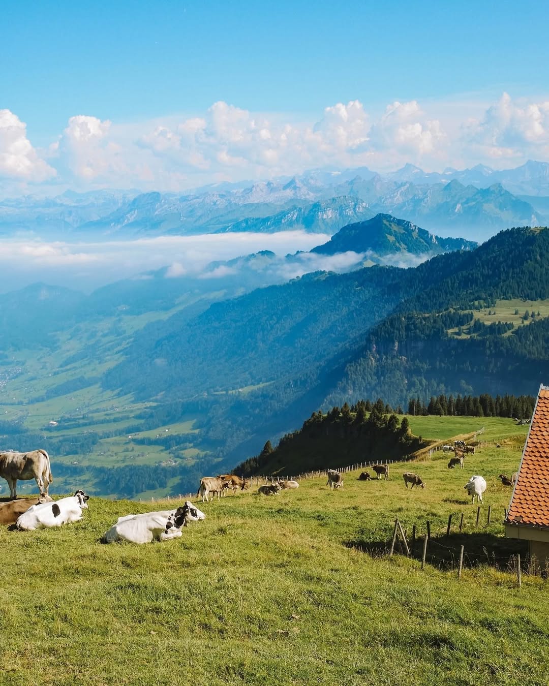 Rigi Kulm is often called the “Queen of the Mountains,” and once you reach the top, you’ll understand why. At 1,798 meters, the summit gives you sweeping views over 13 lakes and a wide stretch of the Swiss Plateau.