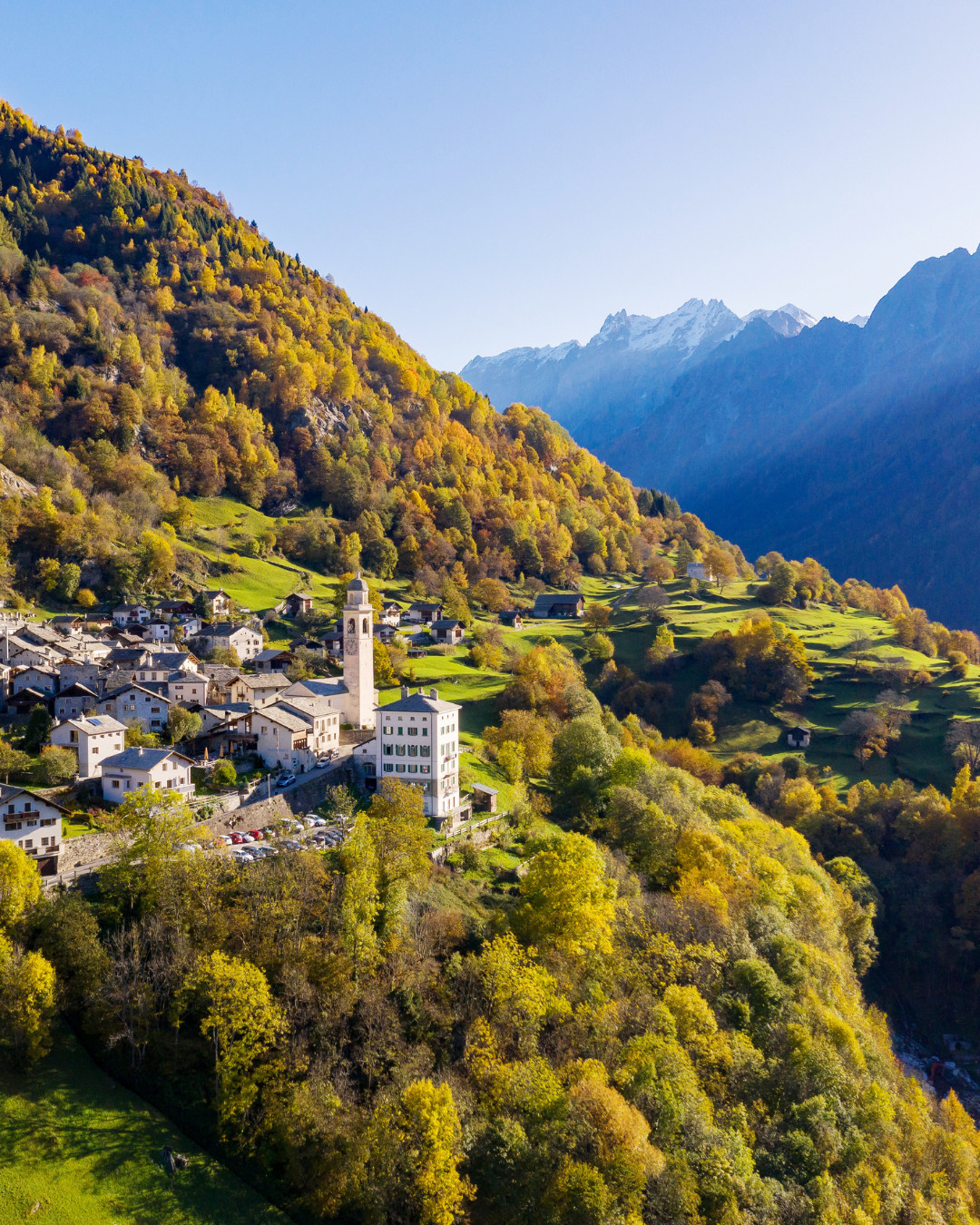 The village is small, with fewer than 300 residents, and that’s part of its charm. From the main viewpoint, you can see the Sciora mountain group rising sharply, and if you stay overnight, you’ll notice how silent it becomes after sunset.