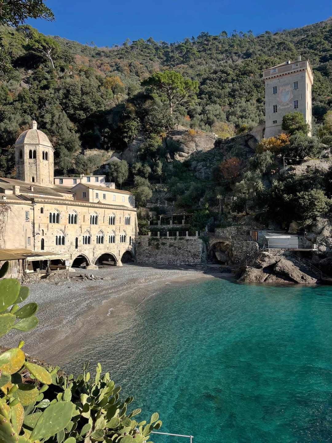 The abbey dates back to the 10th century and entry costs around €9. The beach itself is small, just about 200 meters wide, but the setting is unforgettable. Boats from Camogli or Portofino take about 30 minutes and cost €15 to €25.