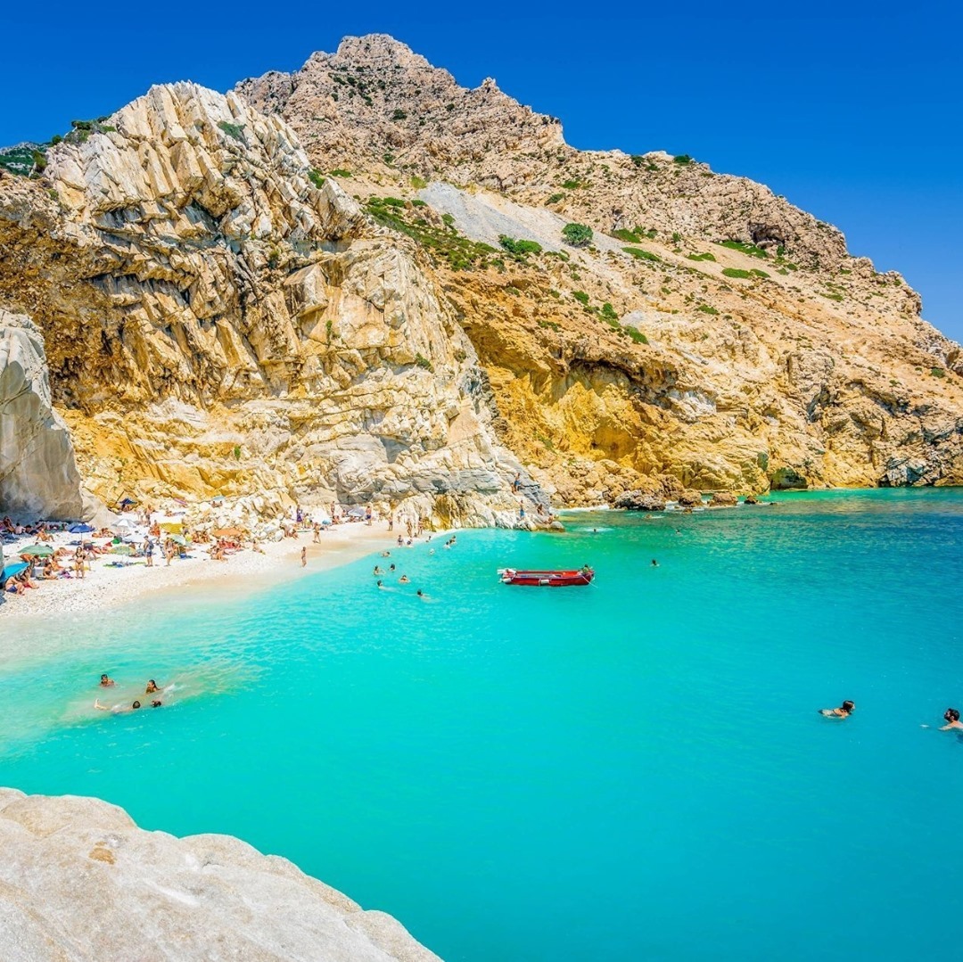 The island stretches about 50 km long, with dramatic terrain that keeps many beaches secluded. Apella Beach is often ranked among Greece’s best, with water visibility reaching 20 to 30 meters on calm days. Flights from Athens take about 1 hour, or you can ferry from Rhodes in roughly 4 hours.