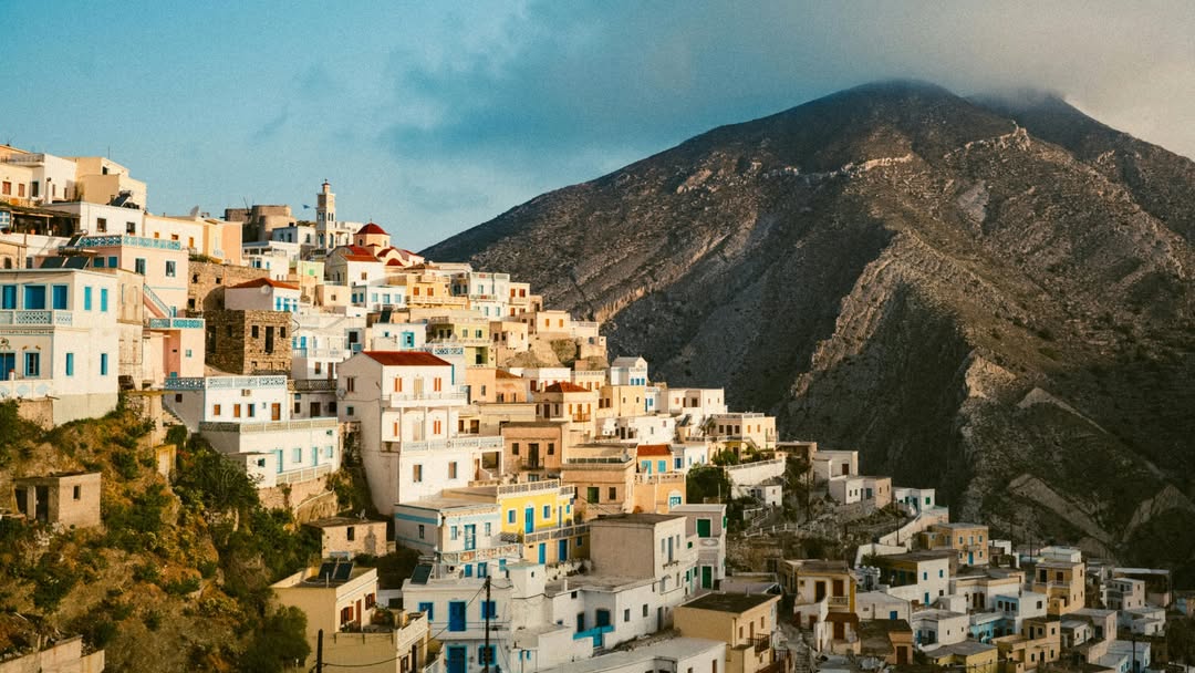 Karpathos feels like Greece before tourism reshaped it. You’ll notice it most in Olympos village, where traditions still define daily life. Women wear embroidered dresses, and houses are painted in bright colors that contrast sharply with the rugged mountain backdrop.