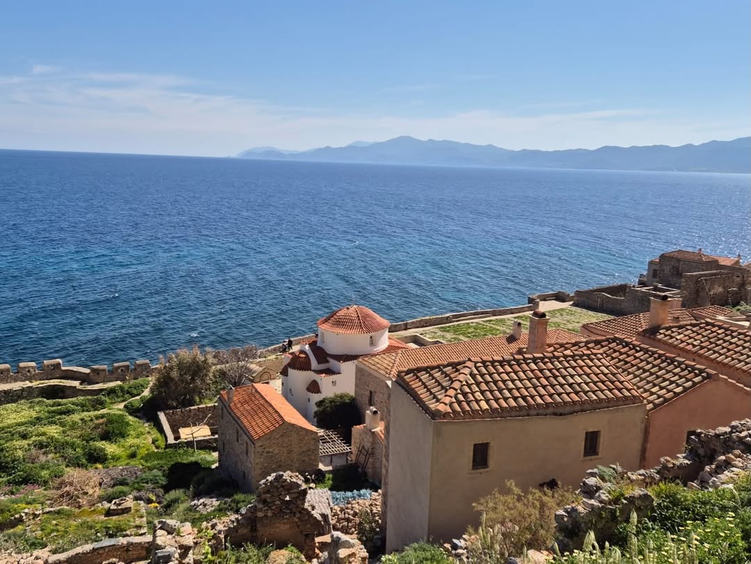 This place feels like stepping into another century. Monemvasia is a fortified medieval town carved into a massive rock island, connected to the mainland by a narrow causeway about 200 meters long. As you walk through its stone gate, you’ll notice narrow cobbled streets, Byzantine churches, and almost no modern signage.