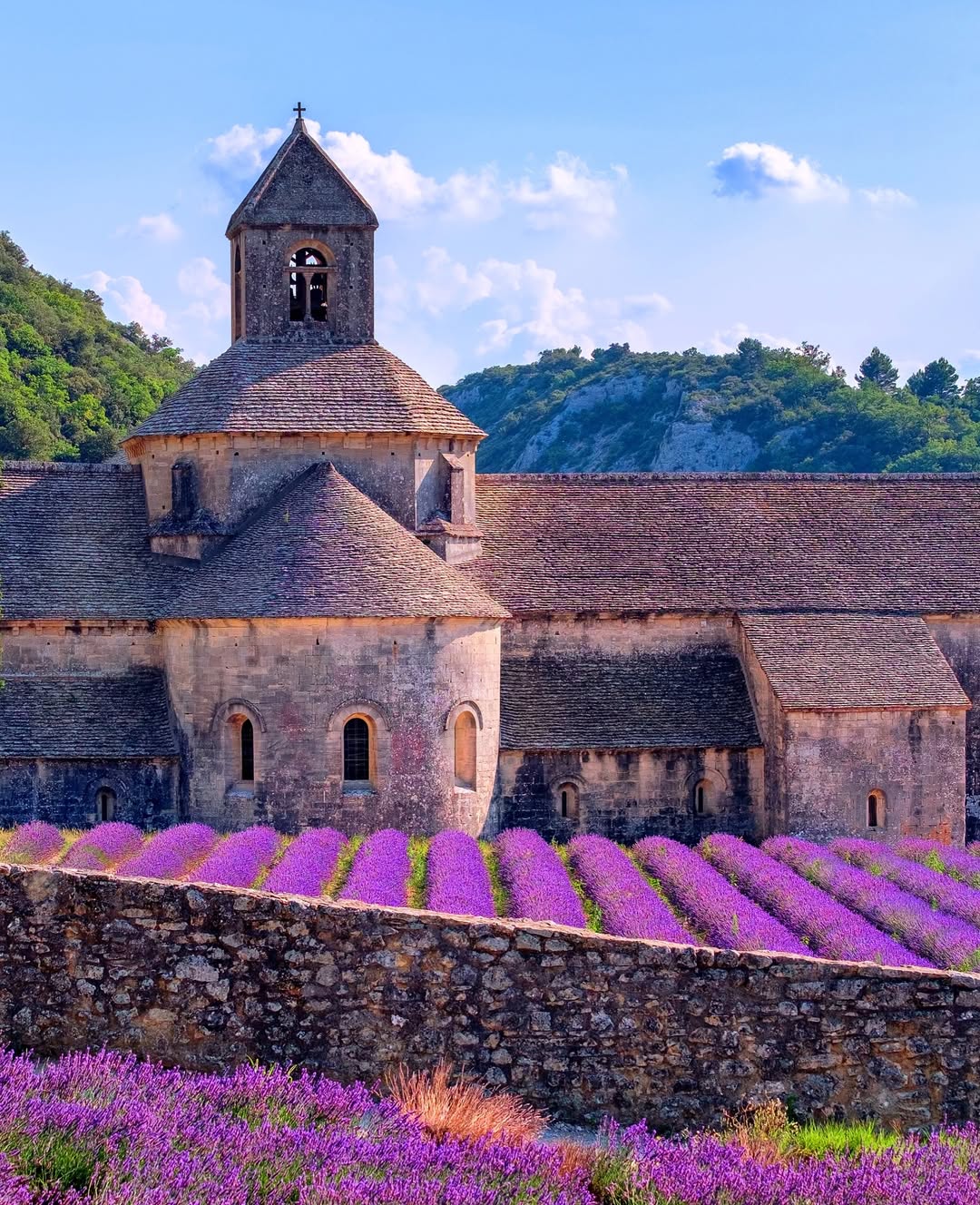You’ll first notice the symmetry. The abbey sits perfectly framed by lavender fields, creating one of the most balanced landscapes in southern France.