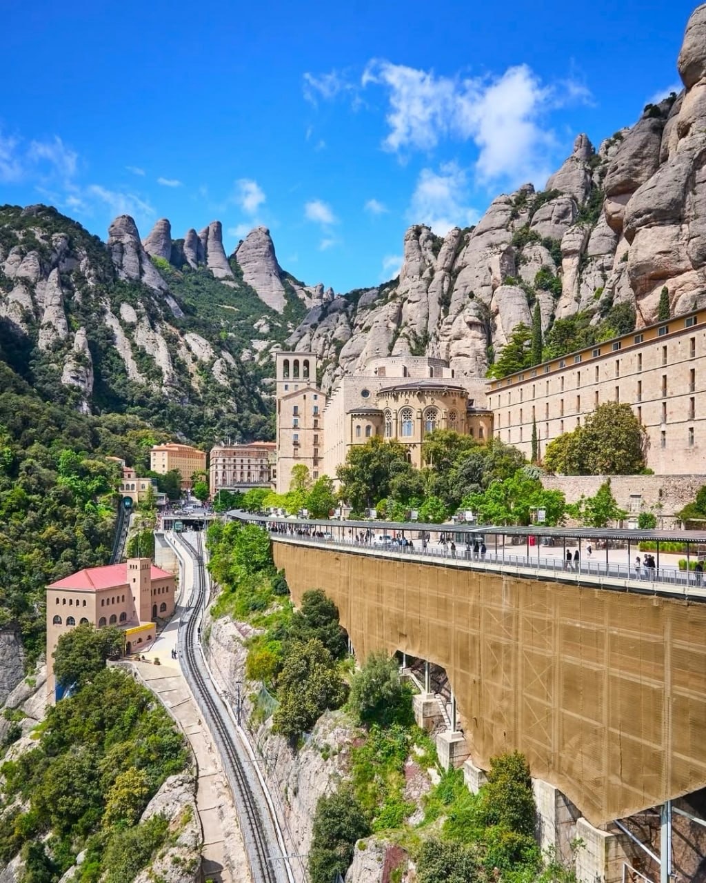 Montserrat is about 60 km from Barcelona, and the journey takes roughly 1 hour by train and cable car. The monastery dates back to the 11th century and houses the famous Black Madonna. Around 2 million visitors come each year, but mornings before 10:00 AM are still relatively quiet.