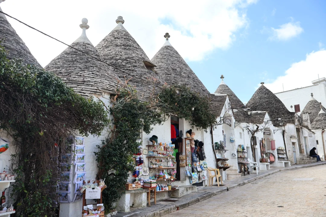 Alberobello feels almost surreal. Hundreds of cone-shaped white houses fill the town, and you will notice how uniform yet unique they look.