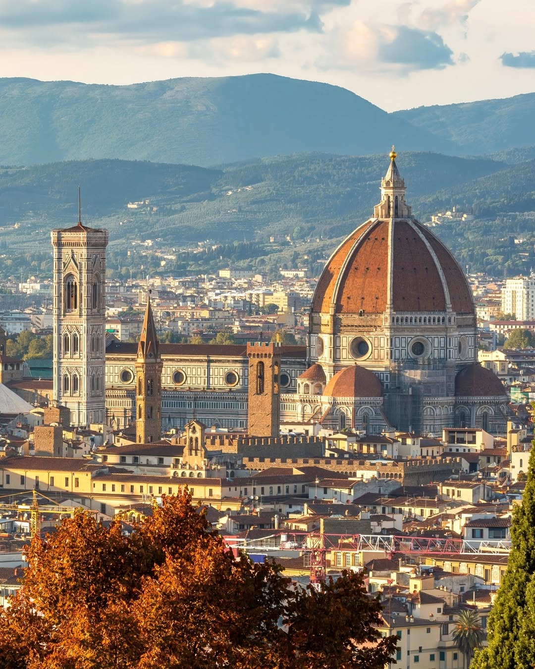 The Florence Cathedral stops you mid-step. Its dome, engineered by Brunelleschi, rises 114 meters and dominates the skyline. Up close, the green, pink, and white marble facade is incredibly detailed, and you will notice patterns that feel almost geometric and hypnotic.