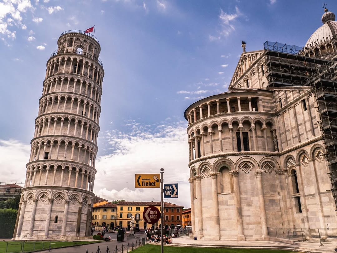 Construction began in 1173 and took nearly 200 years due to pauses caused by the unstable ground. Climbing the tower costs around €20, and only about 45 people are allowed every 15 minutes.